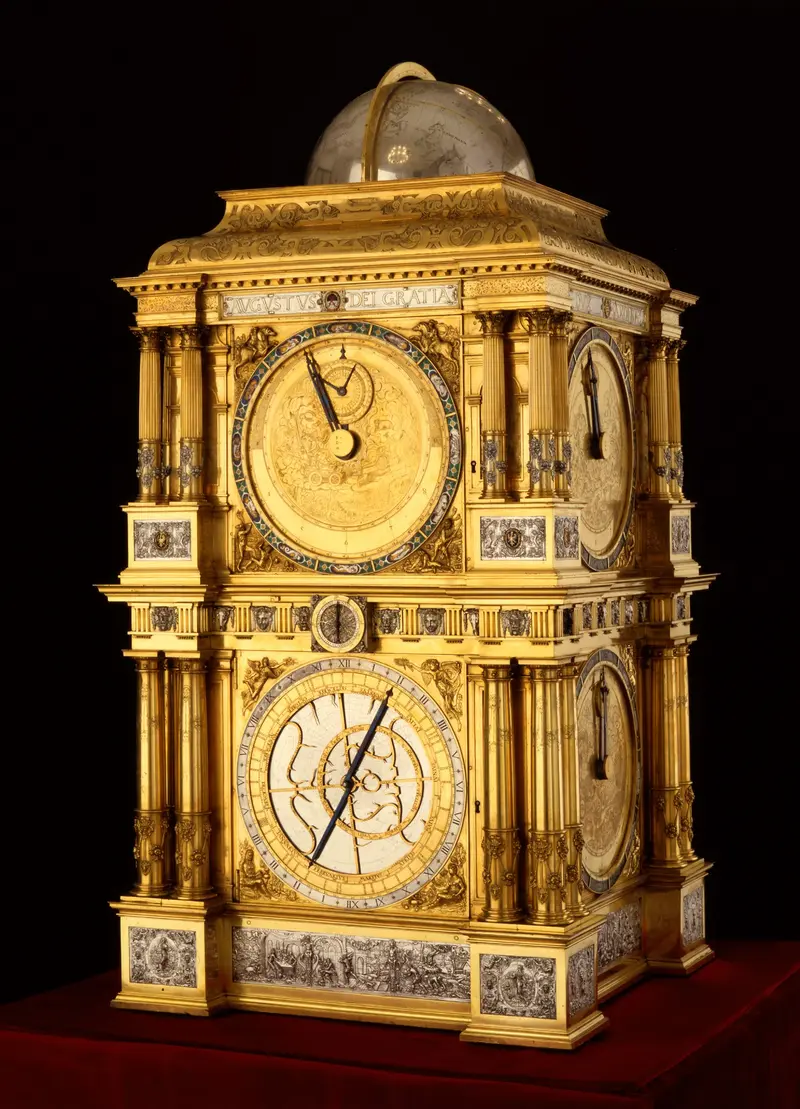 Der geniale Instrumentenbauer Eberhard Baldewein leitete die Anfertigung der Uhr, einer Art Himmelsmaschine, die 1563 bis 1568 in präziser Kleinstarbeit für den Kurfürst August I. von Sachsen geschaffen wurde. Damit schuf er eine technologische Spitzenleistung und ein künstlerisches Meisterwerk.