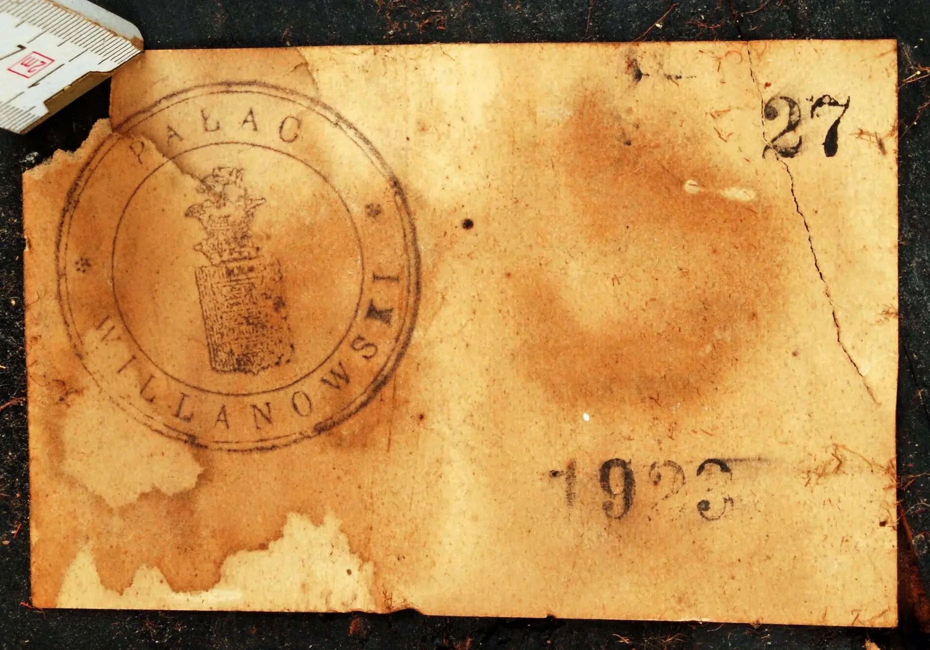 Im Kunstgewerbemuseum und in den sächsischen Archiven waren keinerlei Unterlagen zu den Möbeln und den Vorgängen in Wilanów im Dritten Reich aufzufinden. Daher kontaktierten wir das Palastmuseum Schloss Wilanów mit der Bitte um nähere Auskunft zu den Aufklebern. Die dortige Kuratorin reagierte innerhalb weniger Tage "mit wahrer großer Freude" auf den für sie unerwarteten Fund und konnte den Standort der Möbel in Wilanów bis 1944 anhand von historischen Fotos, Inventareinträgen, Brief- und Aktenverkehr sowie Publikationen eindeutig belegen. Nur als Beispiel sei der 1940 angefertigte Katalog „Sichergestellte Kunstwerke im Generalgouvernement“ genannt, der beschlagnahmte Kunstwerke in den von deutschen Truppen im Zweiten Weltkrieg besetzten polnischen Gebieten aufzeigt. Von den darin erfassten 521 Positionen aus ganz Polen stammen allein 74 aus Wilanów. Seit Kriegsende galten der Damenschreibtisch und der Kabinettschrank als vermisst und waren in der internationalen Suchdatenbank des polnischen Ministeriums für Kultur und Nationales Erbe registriert.