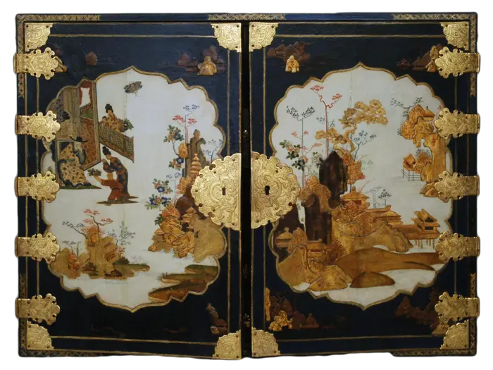 Die dichte Quellenlage zu den Möbeln endet mit dem Abtransport aus Wilanów 1944 durch die deutsche Wehrmacht. Trotz intensiver Recherchen ist für die kommenden 45 Jahre bis zur Inventarisierung im Kunstgewerbemuseum nicht nachweisbar, wo sich der Kabinettschrank und der Damenschreibtisch befanden. Es bleiben nur Mutmaßungen: Gelangten sie gleich 1944 nach dem Abtransport durch den für Warschau zuständigen Kunsthistoriker Dr. Alfred Schellenberg nach Sachsen? Wurden sie im Februar 1945 beim Kunsttransport von Schlesien nach Coburg durch den Provinzialkonservator von Niederschlesien Günther Grundmann in Zittau oder Herrnhut zurückgelassen? War aufgrund des Vorrückens der Roten Armee ein Weitertransport nicht mehr möglich? Oder waren sie bei den seit Anfang 1945 im Auftrag des Generalgouverneurs Hans Frank auf dem Schienenweg in zahlreichen Waggons durchgeführten Abtransporten polnischen Kulturgutes dabei? Wir wissen es nicht. Für beide Möbel ist mit Sicherheit davon auszugehen, dass sie im Herbst 1944 von der deutschen Wehrmacht in Wilanów gestohlen wurden. Wann und wie sie ihren Weg in das Dresdner Kunstgewerbemuseum gefunden haben, wird vermutlich nicht mehr zu klären sein - ein legaler Erwerb ist auszuschließen.