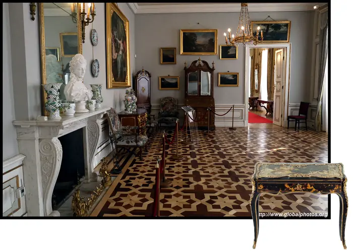 In den Inventarbüchern des Kunstgewerbemuseums vor 1945 sind die beiden Möbel nicht aufgeführt, sie wurden erst 1989 mit dem Hinweis "unbekannte Herkunft" erfasst - was auf einen Zugang nach dem Zweiten Weltkrieg hindeutet. Bei der Schnellerfassung in den 1960er bis 1980erJahren wurden im Kunstgewerbemuseum in den Inventarbüchern und auf den Karteikarten nur sehr selten historische Markierungen aufgenommen, so dass wir erst bei der Überprüfung der Möbel im Rahmen des „Daphne“-Projektes zwei Papieraufkleber mit dem Hinweis „PAŁAC WILLANOWSKI“ entdeckten, die auf das am südlichen Ende des Warschauer Königsweges gelegene Schloss Wilanów verweisen, dem ältesten Kunstmuseum Polens.